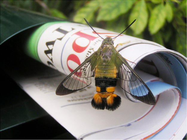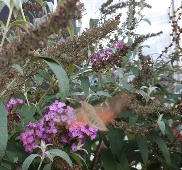 Another thing I want to say is that you likely didn’t see a snowberry clearwing, because to my knowledge they haven’t been recorded in Australia. It was probably a gardenia bee hawkmoth (cephonodes kingii), which looks similar.