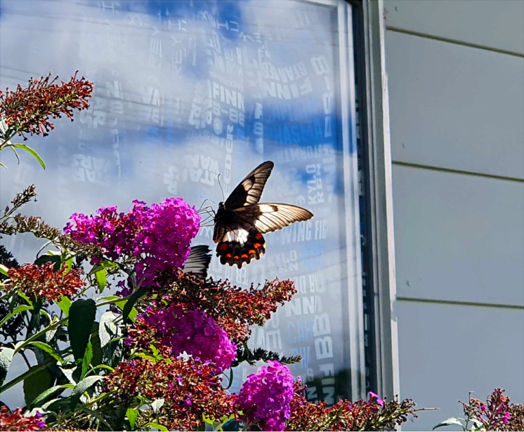ummm hello apparently there are TWO female papilio aegus butterflies in our garden??!?!? omgggggggg two big beautiful women ♥