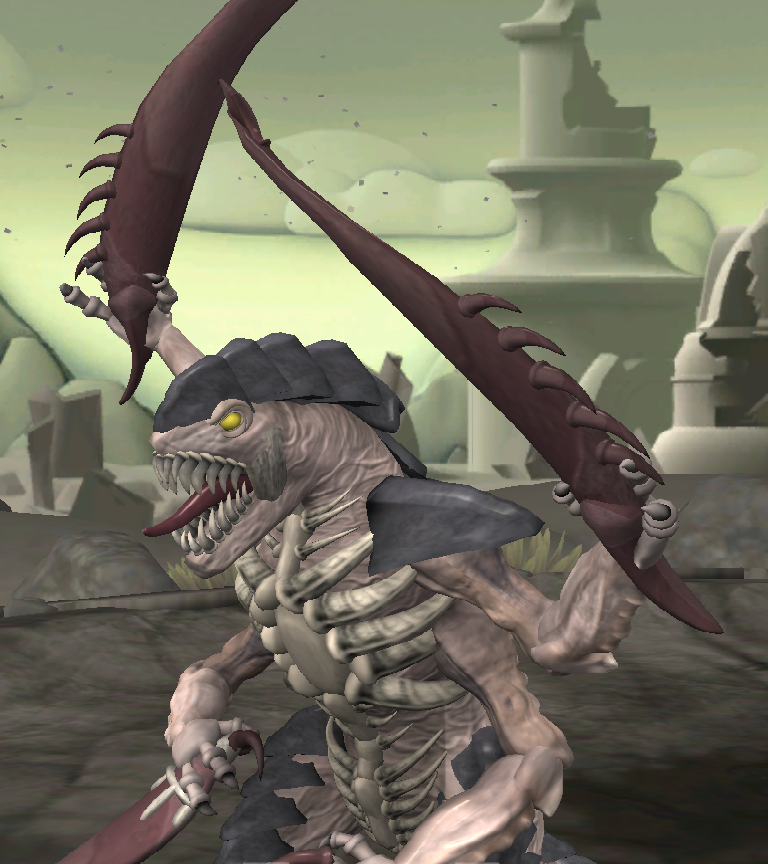 A Tyranid Warrior from Warhammer 40k that I made in Spore! I don’t know shit about warhammer but my buddy L does, and he suggested I make one of these fellas so I did. So uh, sorry if I got some details wrong, this one was really hard to do 😭 This guy crashed my game when I tried to save it right at the end (thankfully after I’d taken the pictures) and I lost some posing and colouring progress 😥 but that’s just the way of things when it comes to spore. Took me rougly 2 and half hours to make.
