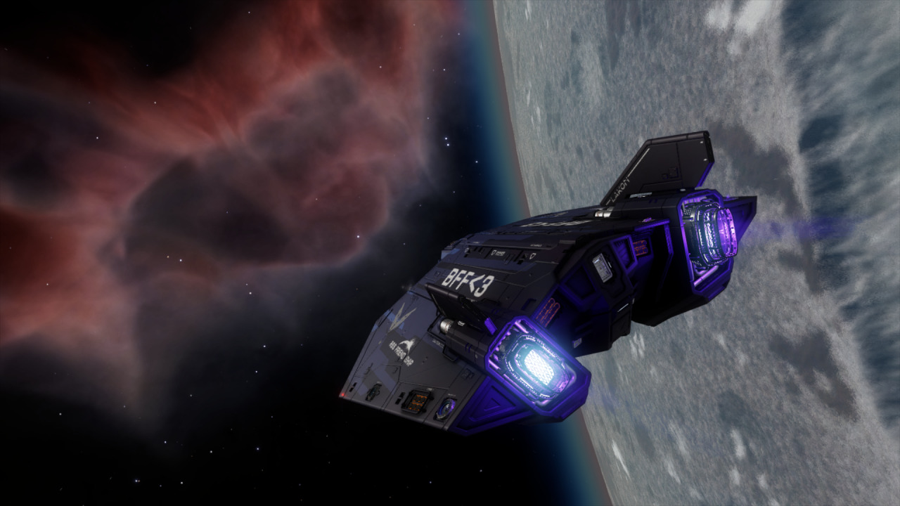 Though, I have discovered a new “risk”, as it were. I spoke to my friend L about the whole exobiology thing, and he showed some interest in potentially getting a bunch of credits for a better (and larger) ship. I’d already gotten the Cobra MK V and kitted it out for exobiology, and I showed him the ropes. We were having a great time. And then, the shenanigans started.