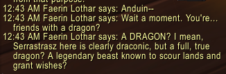 Serrastrasz also goes by He/him pronouns when in his visage form, but goes by She/her when in his regular Draconic form. For ease of reading, we'll assume that Serrastrasz is in his visage form the entire time as I talk about him.