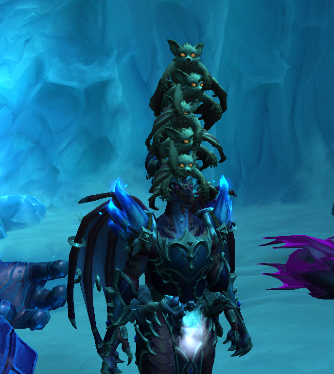 A quest I did in the Dragon Isles in which I had to save a bunch of little kits, who of course piled on top of my head.