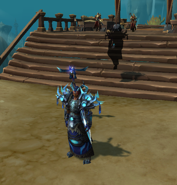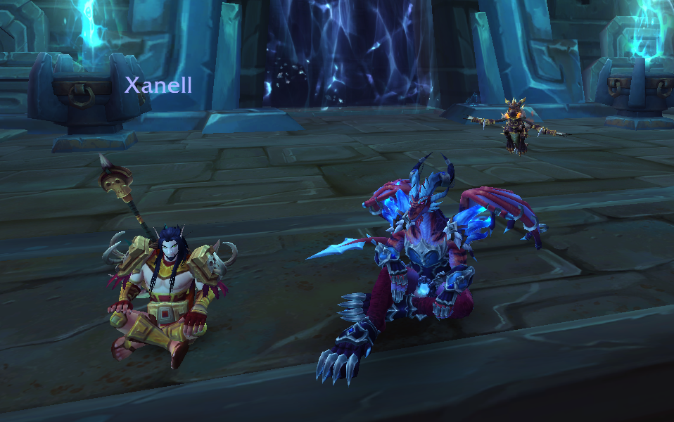 Me and my buddy L sitting down somewhere in Zuldazar. He was levelling his character while I followed him around obsessively healing him as a max level character.